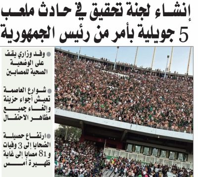 وختم البيان: “تضم هذه اللجنة على وجه الخصوص ممثلين عن وزارات الداخلية والعدل والسكن والرياضة بالإضافة إلى المصالح المختصة التابعة لقيادة الدرك الوطني والمديرية العامة للأمن الوطني وهيئة المراقبة التقنية للبنايات، ومسؤولي نادي مولودية الجزائر”، وفقا للمصدر ذاته).