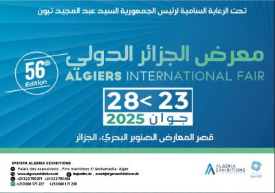 تنطلق، اليوم تحت الرعاية السامية لرئيس الجمهورية عبد المجيد تبون، فعاليات معرض الجزائر الدولي في طبعته السادسة والخمسين، من 23 إلى 28 جوان 2025 بقصر المعارض، الصنوبر البحري – الجزائر العاصمة.