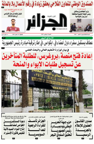 الجزائر عدد 02 سبتمبر 2023 1 سبتمبر 2023 pdf اضف تعليق 7,716 زيارة شاركها Facebook Twitter Google + مقالات مشابهة الجزائر عدد 26 جانفي 2026 25 يناير 2026 الجزائر عدد 25 جانفي 2026 24 يناير 2026 الجزائر عدد 22 جانفي 2026 21 يناير 2026 2023-09-01 bouskine boubakeur شاركها Facebook Twitter Google +