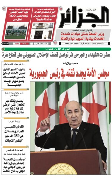 الجزائر عدد 27 ديسمبر 2023 26 ديسمبر 2023 pdf اضف تعليق 609 زيارة شاركها Facebook Twitter Google + مقالات مشابهة الجزائر عدد 19 جانفي 2026 18 يناير 2026 الجزائر عدد 18 جانفي 2026 18 يناير 2026 الجزائر عدد 15 جانفي 2026 14 يناير 2026 2023-12-26 bouskine boubakeur شاركها Facebook Twitter Google +