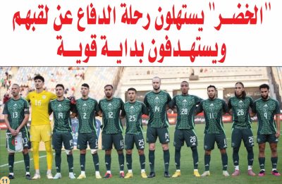 يذكر أن اللقاء الثاني لـ”الخضر” سيكون أمام البحرين يوم السبت المقبل على ملعب “خليفة الدولي” 14:30، وهو الملعب نفسه الذي يختتم فيه دور المجموعات أمام العراق يوم 9 ديسمبر على الساعة 18:00.
