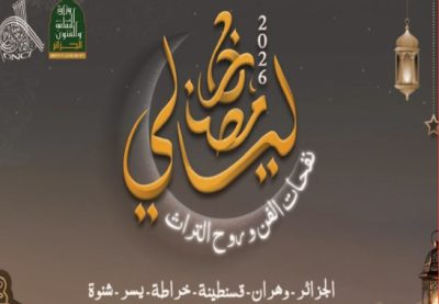 ووفق ذات المصدر، يهدف هذا البرنامج الفني الموسوم “ليالي رمضان“، تحت شعار “نفحات الفن وروح التراث“، إلى إحياء ليالي شهر رمضان الكريم من خلال تنظيم سهرات فنية تجمع بين الأصالة والمعاصرة وتبرز تنوع وثراء التراث الثقافي الجزائري، بما ينسجم مع روحانية الشهر الفضيل، حيث سينطلق البرنامج بداية من 25 فبراير الجاري على الساعة العاشرة ليلا ويمتد لغاية 15 مارس المقبل، حسب المنظمين.
