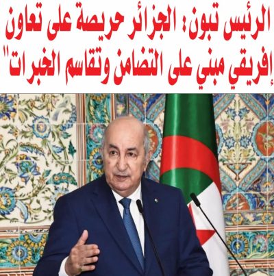 وقال الرئيس تبون، إن الجزائر المخلصة لمبادئ التضامن الأفريقي تظل مقتنعة بأن التعاون القاري القائم على الاحترام المتبادل والمصلحة المشتركة، سيكفل لقارتنا استثمار إمكاناتها برشاد وفعالية خدمة لشعوب القارة المتطلعة إلى المزيد من التنمية والعيش الكريم.