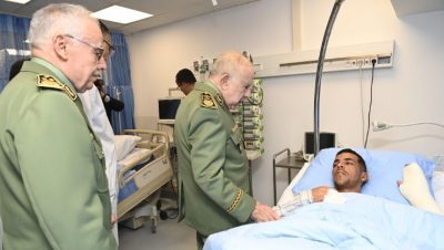 وفي هذا السياق “تنقل أمس الاثنين الفريق أول السعيد شنقريحة، الوزير المنتدب لدى وزير الدفاع الوطني، رئيس أركان الجيش الوطني الشعبي، مرفقا بالمدير المركزي لمصالح الصحة العسكرية لوزارة الدفاع الوطني، إلى المستشفى المركزي للجيش بعين النعجة بالناحية العسكرية الأولى، أين قام بتفقد المصابين والاطلاع عن قرب على وضعهم الصحي، وكذا تقديم الدعم المعنوي لهم ولعائلاتهم، متمنيا لهم الشفاء العاجل“، وفقا للبيان.