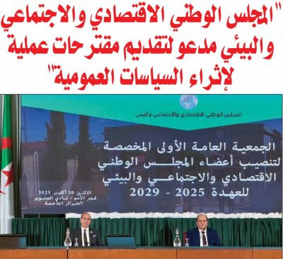 دعا الوزير الأول، سيفي غريب أمس، المجلس الوطني الاقتصادي والاجتماعي والبيئي، إلى تقديم مقترحات عملية من شأنها الإسهام في إثراء مسار صياغة السياسات العمومية، وأبرز دور المجلس في تعزيز الحوار الاجتماعي والتشاور الواسع بين مختلف الفاعلين الاقتصاديين والاجتماعيين في البلاد.