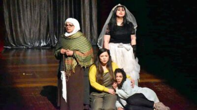 الجدار الخامس” من إنتاج المسرح الجهوي سيدي بلعباس ، نص ” علي تامرت” وإخراج “عز الدين عبار” ، دراماتورج ” يوسف ميلة”، مساعد مخرج “مربوح عبد الإله” وسينوغرافيا “مراد بوشهير”، في حين أسندت أدوار العرض لكل من “أمينة تواتي”، “نوال بن عيسى”، “مايا إيمان لعيمش”، “نوال عواق”، “نصيرة صحبي” و”شهرة بن بكريتي” .