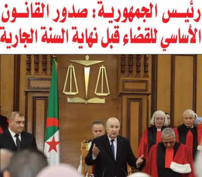 وخلال إشرافه على مراسم افتتاح السنة القضائية الجديدة (2025- 2026)، بمقر المحكمة العليا، أوضح رئيس الجمهورية أن القانون الأساسي للقضاء سيصدر قبل نهاية السنة الجارية.