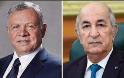 تلقى رئيس الجمهورية عبد المجيد تبون، أمس مكالمة هاتفية، من ملك المملكة الأردنية الهاشمية عبد الله الثاني، تبادلا فيها الآراء حول الوضع السائد في العالم العربي بصفة خاصة والمستجدات في العالم.