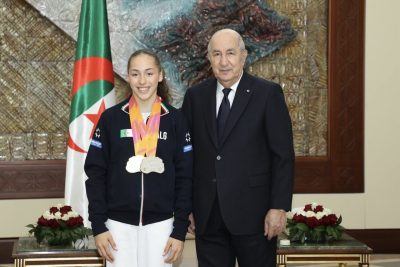 استقبل رئيس الجمهورية عبد المجيد تبون، اليوم،البطلة الأولمبية والعالمية كيليا نمور رفقة والديها والطاقم الفني والتقني لفيدرالية الجمباز.