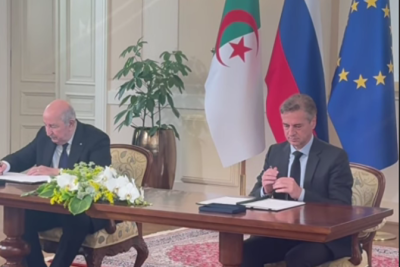 أشرف رئيس الجمهورية، عبد المجيد تبون رفقة الوزير الأول السلوفيني، السيد روبرت غولوب، يوم بالعاصمة ليوبليانا، على التوقيع على إعلان مشترك بين الجزائر وجمهورية سلوفينيا.
