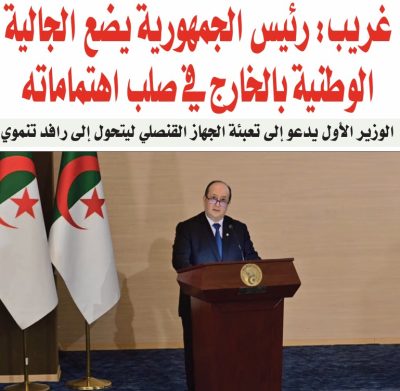 كما أبرز الوزير الأول “حرص الدولة التام على التكفل الأمثل بالجالية الوطنية المقيمة بالخارج وحمايتها والإصغاء الدائم لانشغالاتها“، مشيرا إلى أن تحقيق هذا المبتغى يستوجب “مواصلة دعم دور شبكتنا الدبلوماسية والقنصلية في تطوير أساليب عملها قصد الاضطلاع بالمهام المنوطة بها تجاه هذه الشريحة المهمة من المجتمع الجزائري“.