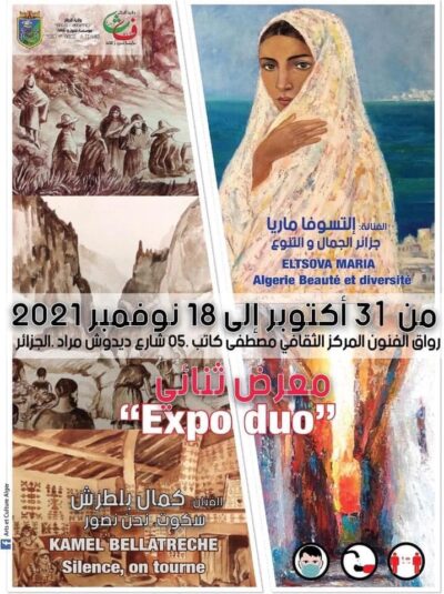 يتواصل المعرض الفني للثنائي التشكيلي كمال بلطرش وزوجته الروسية إلتسوفا ماريا إلى غاية 18 نوفمبر المقبل، على مستوى المركز الثقافي مصطفى كاتب بالجزائر العاصمة، التابع لمؤسسة “فنون وثقافة”.