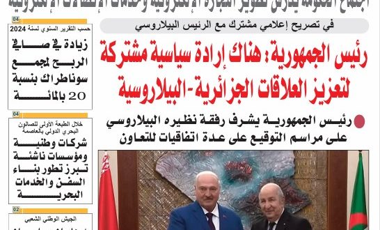 أكّد رئيس الجمهورية عبد المجيد تبون أمس، أن زيارة رئيس جمهورية بيلاروسيا ألكسندر لوكاشينكو، إلى الجزائر تعبّر عن إرادة سياسية مشتركة لتعزيز العلاقات، بعد محطتين. وأوضح رئيس الجمهورية في تصريح إعلامي مشترك مع الرئيس البيلاروسي، أدلى به رئيس الجمهورية، في ختام جلسة المباحثات التي جمعتهما بالجزائر، أن زيارة الرئيس البيلاروسي …