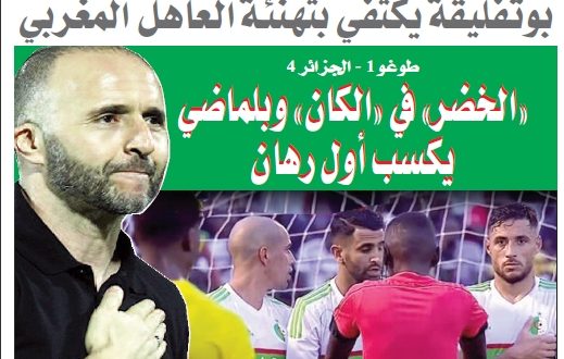 أحدث المدرب الوطني جمال بلماضي ثورة على مستوى التشكيلة الأساسية التي ستواجه بعد قليل المنتخب الطوغولي، ضمن الجولة الخامسة من تصفيات “كان 2019″ بالكامرون، حيث راهن على أسماء جديدة على غرار بن العمري، شيتة وبلايلي من أجل الإطاحة بـ”الصقور”. ومقارنة بلقاء البنين السابق، …